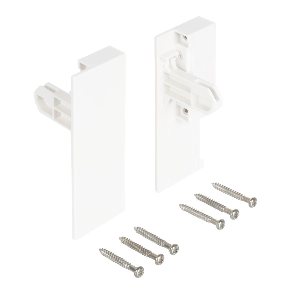 Plastikowe uchwyty do mocowania frontu szuflady wewnętrznej RiexTrack. Front, skrócony odpowiednio do szerokości szuflady, wkłada się pomiędzy te uchwyty. Następnie cały zespół frontu jest zatrzaskiwany w panelach bocznych.
