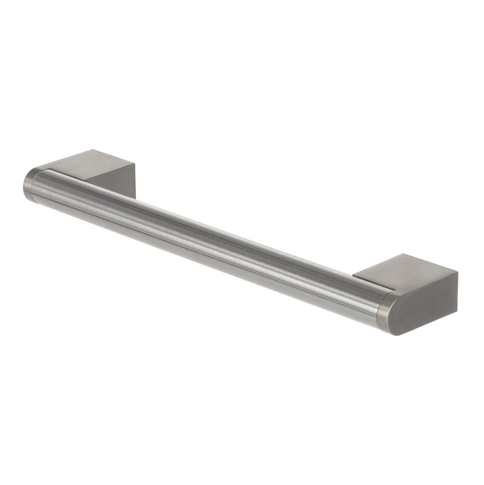 Metalowy uchwyt z wkrętami do przykręcenia do frontu szafki.