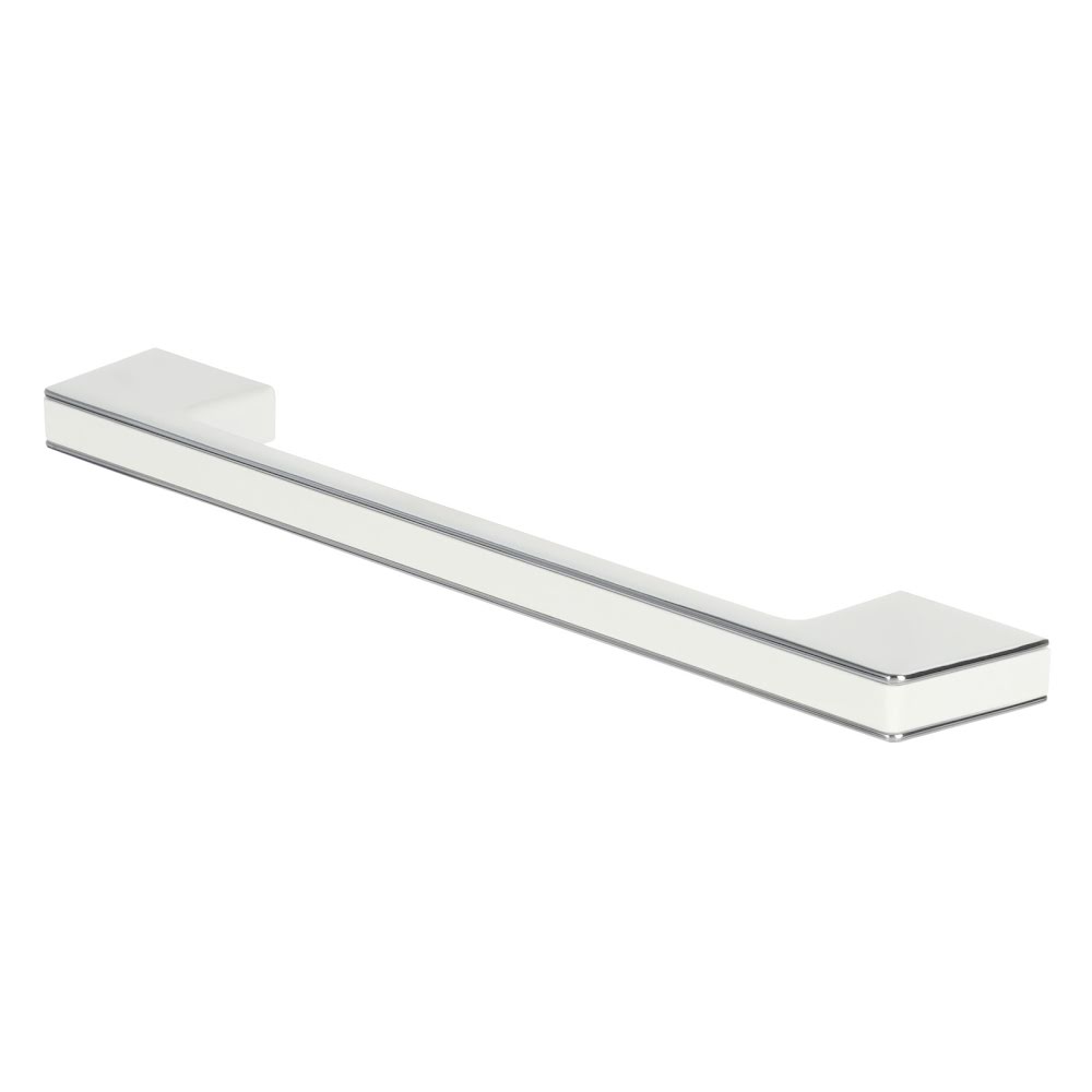 Metalowy uchwyt z wkrętami do przykręcenia do frontu szafki.