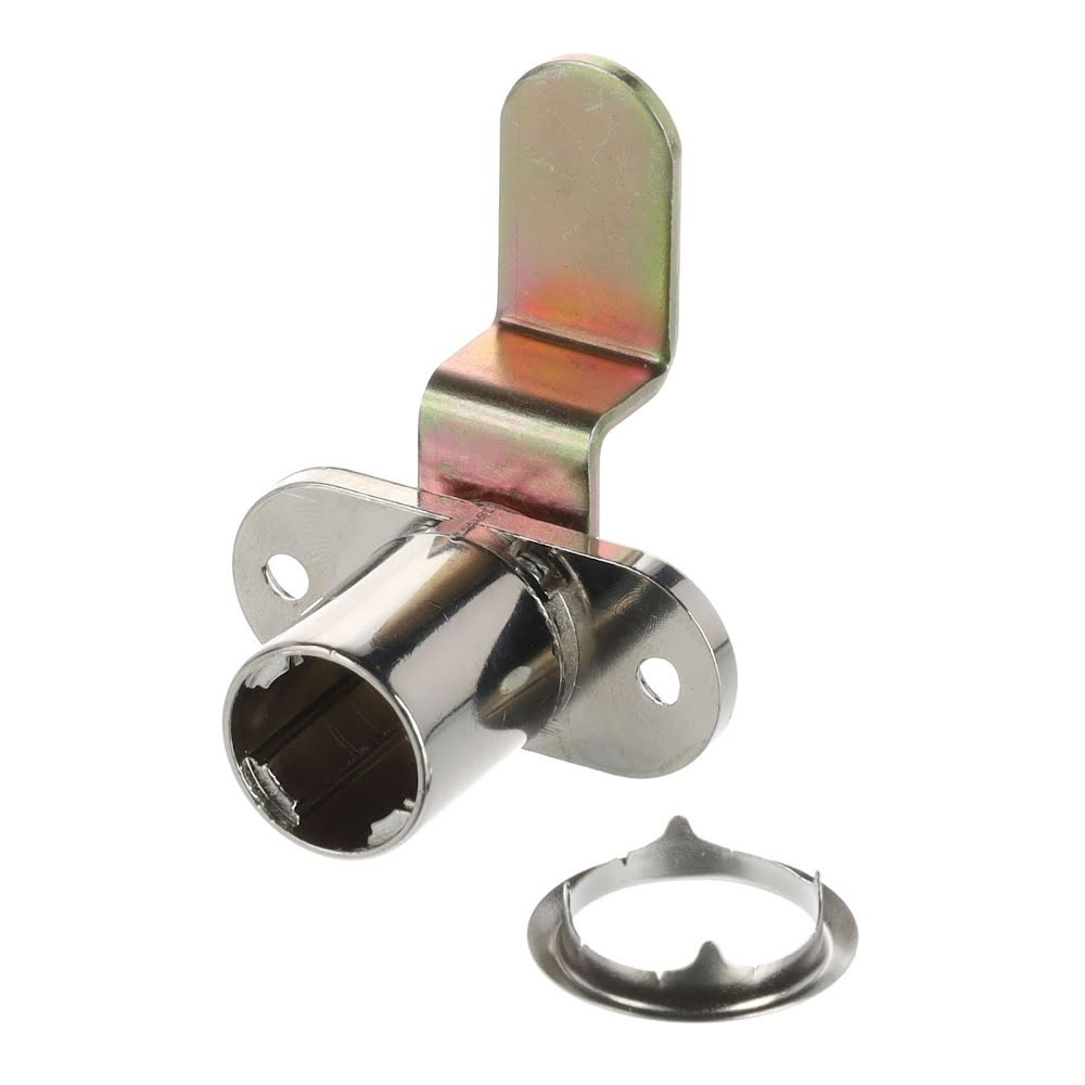 Zamek meblowy z zapadką obrotową. Zamek musi być uzupełniony o wkładkę bębenkową.